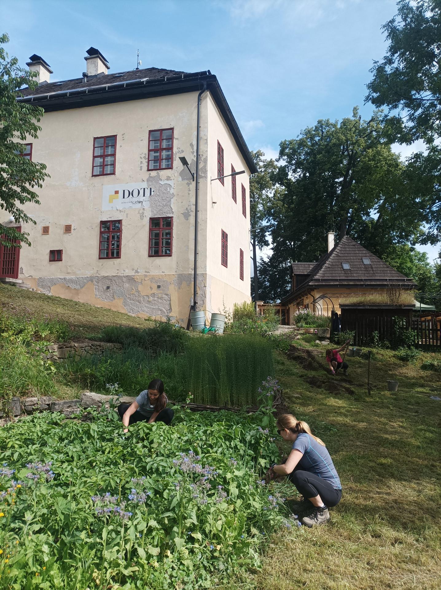 Každý všední den budeme 4 hodiny pomáhat s údržbou ukázkové přírodní zahrady Na Dotek. Budeme navazovat na loňskou práci, kdy jsme společnými silami zvětšili zahradní jezírko. Letos budeme upravovat přítok k němu, tvořit divoký koutek pro živočichy v naší zahradě, natírat venkovní vybavení a další zahradní činnosti. Každý den připravíme i nějakou drobnou práci, se kterou mohou pomoci i děti, když budou mít zájem. Zatím předpokládáme, že dopoledne využijí k volné hře v zahradě (součástí zahrady je menší hřišťátko a další herní prvky), případně dle potřeby připravíme dětem jiný program. V rámci práce vás seznámíme s principy přírodních zahrad a šetrného zahradničení. Více o zahradě ZDE: https://www.dotek.eu/Prirodni-zahrada.html
