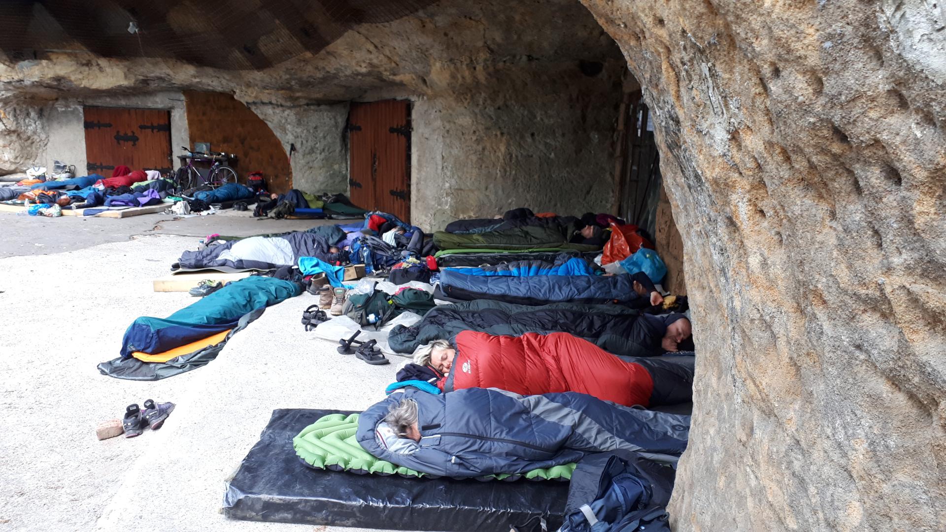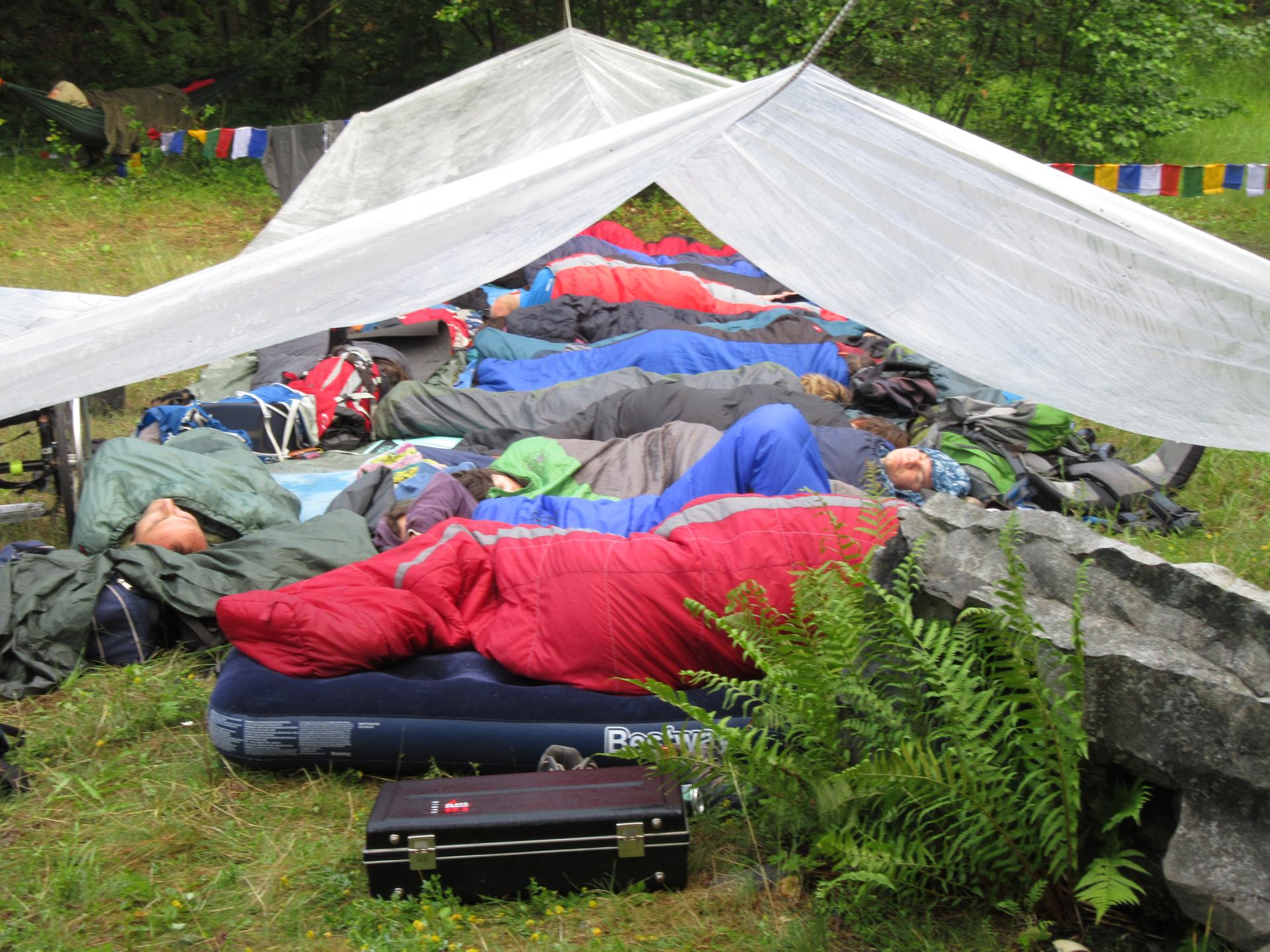 Noclehy: Spát budeme hromadně pod širákem = v tisícihvězdičkovém hotelu, případně pod plachtami (plachty na přístřešky zajištěny). Táboření bude neoficiální – „načerno“, poutnické, skryté. Některé noclehy budou předem domluvené na tajemných místech.