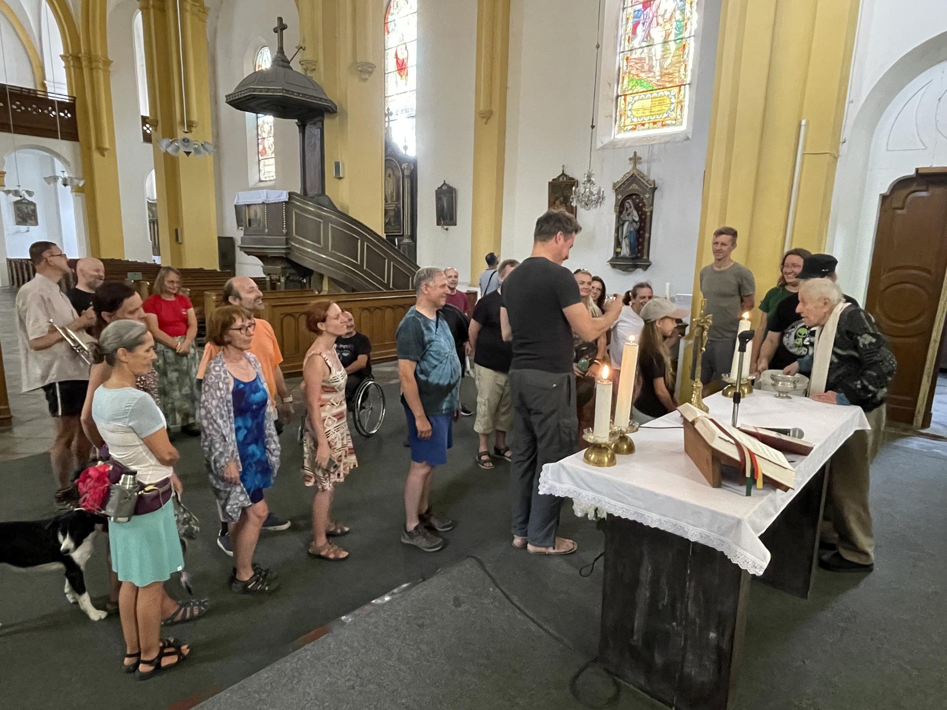 Tak skončil zas týden skvělý. Málo jsme spali, hodně bděli. S partičkou poutníků známých i cizích, se srdci na dlaních ostych hned mizí. Lezeme přes kopce do údolí, leckdy i těžko je, nožičky bolí. Pak ale do noci kytara zazní, každý je spokojen, s prožitou strázní hned usíná se lehce. Co asi čeká nás další dny? Jsme na konci. S úsměvem na tváři, srdíčko zpívá dál!